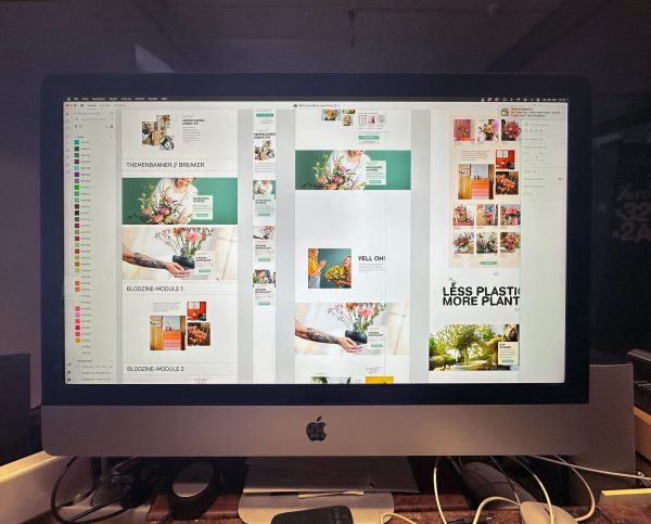 Und jetzt schalten wir mal wieder einen Gang runter und schreiben ganz sachlich, worum es hier eigentlich geht: Womit der (oder die?) KI-KollegIn schon richtig liegt, ist, dass wir den großen Relaunch des Onlineshops von Blume2000 (www.blume2000.de) kreativ begleiten und maßgeblich von den ersten Ideen bis zum Go-Live mit gestalten durften. Besonders im Fokus lag der Ausbau vom reinen Geschenk- oder Blumengrußversand (der ursprüngliche Purpose der Seite) auf den Home-Use-Sektor bei gleichzeitiger Ansprache einer neuen (jüngeren) Zielgruppe. So wurde das Sortiment nun breiter aufgestellt und zum Beispiel um beliebte Grünpflanzen, Beet- und Balkonpflanzen und Staudensortimente erweitert. Neu sind nun auch Dekoartikel rund um alles, was Grün und Schön ist. Da war natürlich für RIDDERWERKE einiges zu tun – angefangen von der Entwicklung einer ordentlichen Navigationsstruktur, über eine gut geplante User-Journey bis hin zur Bildsprache, Komposition und allen grafischen und responsiven Gedanken, die sich Leute wie wir nun mal machen, wenn das später dann nicht nur funktionieren, sondern auch ansprechend sein soll – was beim Webseiten im Jahr 2023 eigentlich dasselbe ist. Hat geklappt. Technisch umgesetzt und optimiert wurden unsere (zum Teil herrlich kontrovers diskutierten) Entwürfe dann von UX- und eComteam von Blume2000, denen wir hier mal ausdrücklich Danke für die schöne und erfrischend konstruktive Zusammenarbeit sagen möchten, ohne Namen nennen zu wollen (Persönlichkeitsrechte etc.). Aber die wissen schon, wer gemeint ist!