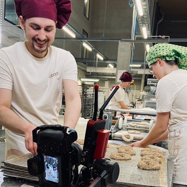 Als wir zum ersten Mal bei Cibaria ankamen, wurden wir herzlich empfangen. Es war uns wichtig, den Kunden kennenzulernen, um ein Gefühl für die Werte und die Leidenschaft zu bekommen, die hinter der Bäckerei stehen. Schließlich führt man keine 30-jährige Bio-Bäckerei mit so viel Engagement, ohne Geschichten zu erzählen. Die Atmosphäre in der Backstube war authentisch – ein Ort, an dem Handwerk und Bio-Qualität im Mittelpunkt stehen.